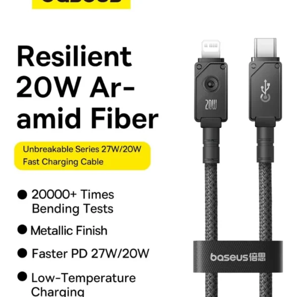 Baseus Cable de Carga rápida y Datos Tipo-C a Lightning, 20W, 2m, Negro