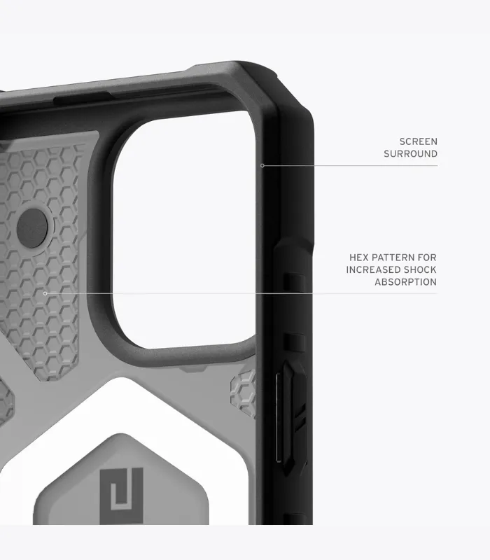 - Material ligero: nuestra funda tiene un diseño co-moldeado elevado, construcción compuesta ligera como una pluma (policarbonato translúcido) con nuestra carcasa blindada exterior rígida patentada, un núcleo suave resistente a los impactos y detalle de tornillo de torsión. Patrón hexagonal para una mayor absorción de impactos. Fabricado con un 25% de materiales reciclados.
