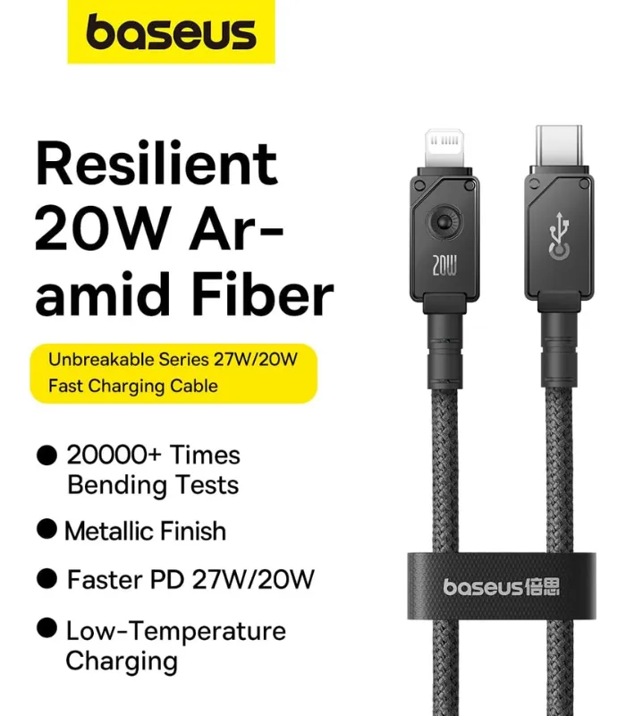 Baseus Cable de Carga rápida y Datos Tipo-C a Lightning, 20W, 2m, Negro