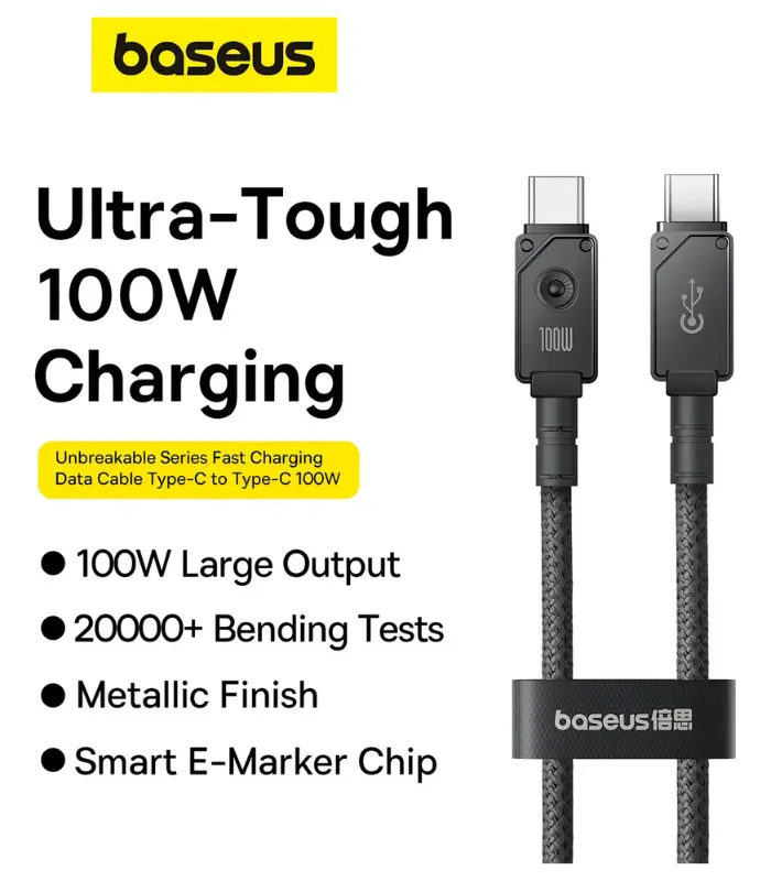 Baseus Cable De Carga Rápida Y Datos Tipo-c A C, 100w, 1m, Negro